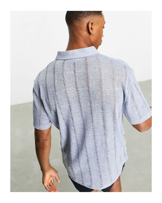 Asos Relaxed Revere Polo Shirt In Blue For Men Lyst Uk